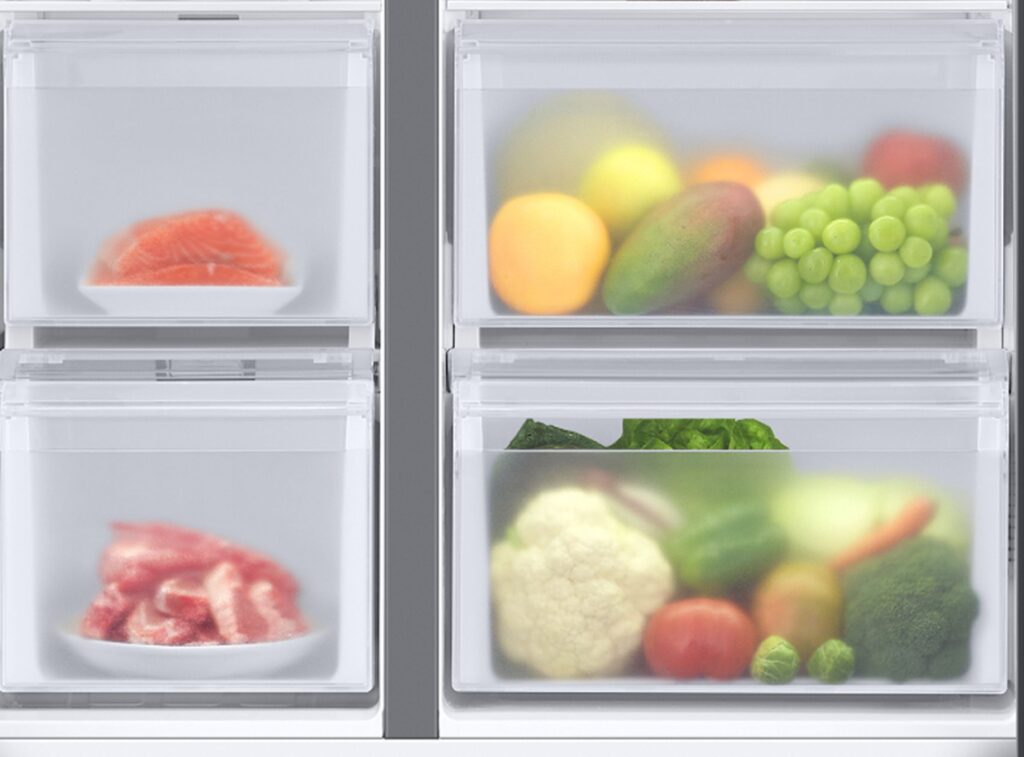 - Crisper drawers for vegetables and fruits